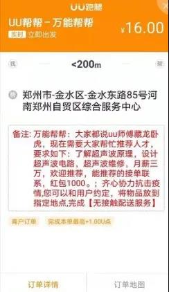帮忙送东西的同时,备注上不忘求散落城市各个角落的跑腿小哥帮助招聘超声波电路维修师傅。UU跑腿自豪地向我表示,未来跑腿小哥还有一万种用法,来解答用户的《十万个为什么》。