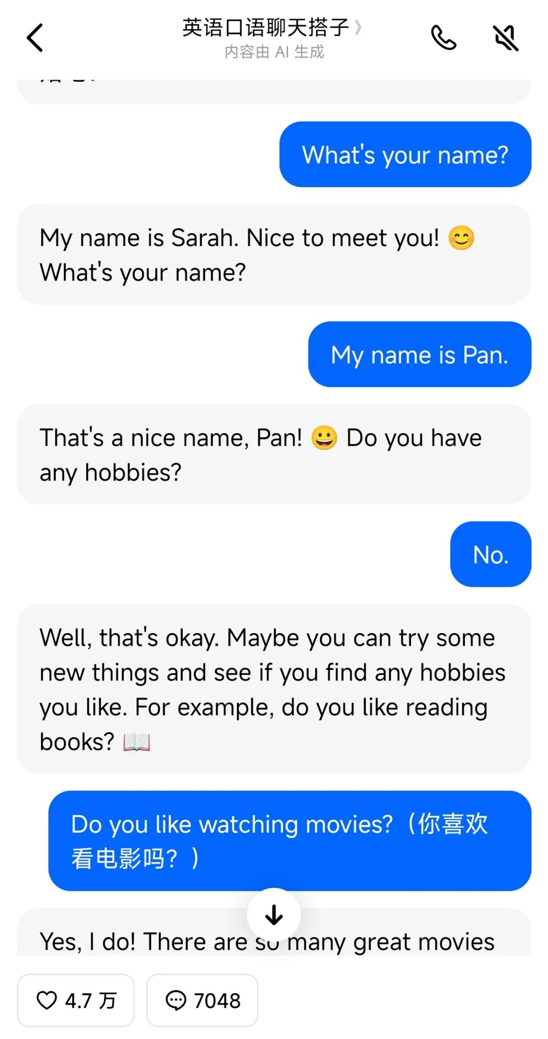 从官方推出的智能体来看,英语口语聊天搭子,可以让你足不出户,和外国人深度对话,老纽约正蓝旗的口音,让你恍惚间以为到了北美。