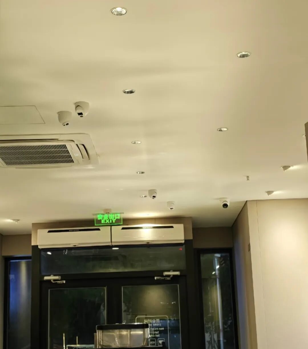 安装完成后,瑞幸门店的摄像头数量,很容易就会达到十几个,像“福寿螺”一样粘住天花板。