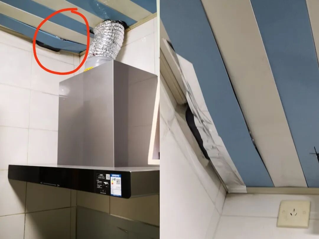 小孙安装方太油烟机时,厨房已经先完成了吊顶,结果师傅安装完成后,吊顶鼓出了一个大包,后面小孙打电话投诉,师傅又上门进行了还原。