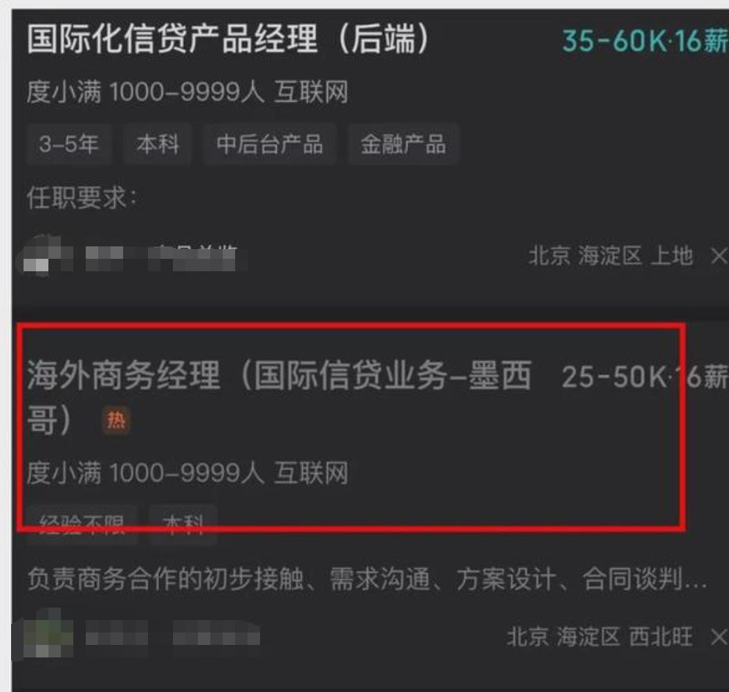 但度小满的出海动作,直到近一两年才明显提速。陆玖商业评论发现,去年下半年,度小满在多地发布招聘广告,准备招募墨西哥、印尼的现金贷相关业务人员。